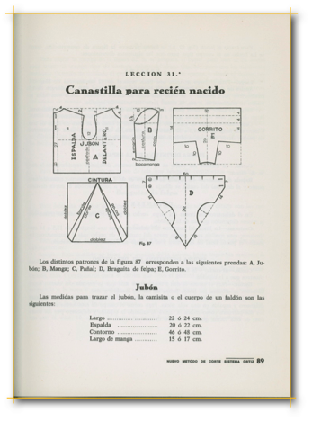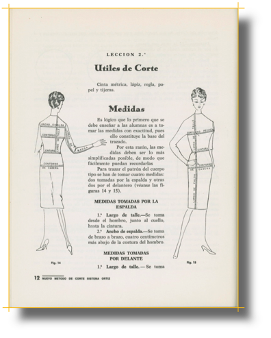 Geometría y Labores Páginas del Sistema Ortiz de Corte y Confección editado en los años sesenta por el Ministerio de Educación y Ciencia con destino a las escuelas.