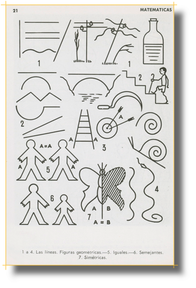 Geometría y Dibujo La geometría no sólo se aplicaba al dibujo matemático. Cualquier disciplina, como la geografía, requería de una buena formación en geometría y dibujo. Los 2.000 dibujos que ofrece este manual de Trillo Torija, editado en 1944, combinan bien la geometría y el dibujo esquemático.