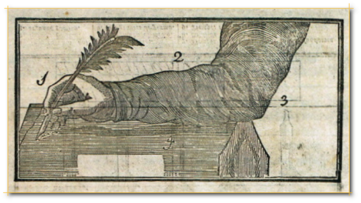 escribir Técnica corporal acerca del modo de coger y usar la pluma de ave.