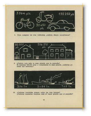 Resolución de Problemas Serie de problemas matemáticos, acompañados de dibujos esquemáticos sencillos para ser copiados en la pizarra o en cuadernos, obra del conocido dibujante Luis Mallafré publicada en Barcelona en 1957.