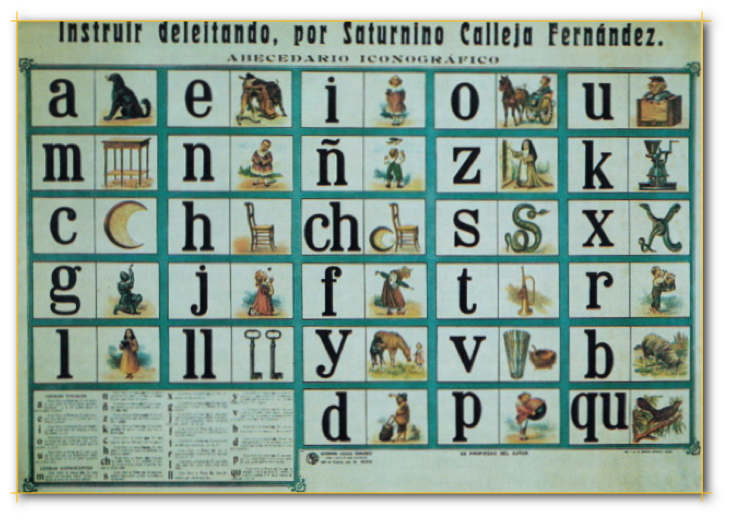 Abecedario iconográfico de la casa Calleja, sin fecha pero editado a finales del XIX, con el título "Instruir deleitando".