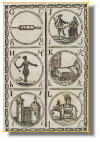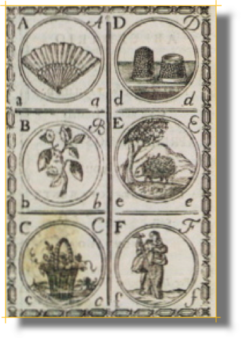 Abecedario demostrado o palpable, publicado en forma de libro por Francisco Mariano Nipho en 1734  "para que con facilidad y en breve tiempo aprendan los niños y aun los adultos a leer perfectamente casi por sí solos. Abecedarios  Iconográficos