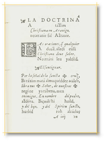 cartillas Doctrina Valencia 1566 Doctrina en lengua   árabe y castellana editada en Valencia en 1566 para alfabetizar a cristianos y moriscos.