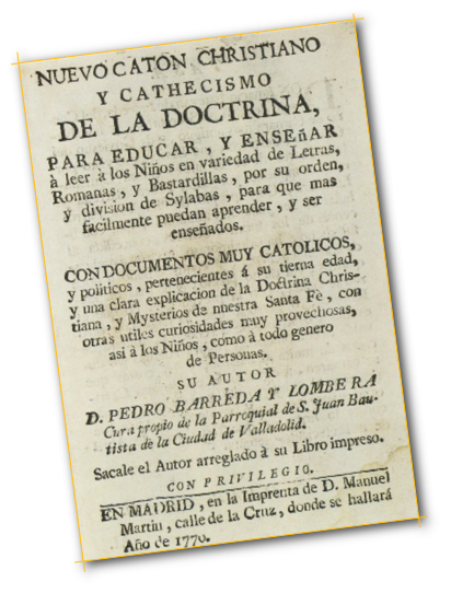 Nuevo catón y catecismo publicado en Madrid en 1770 por Pedro Barreda. Silabarios y Catones