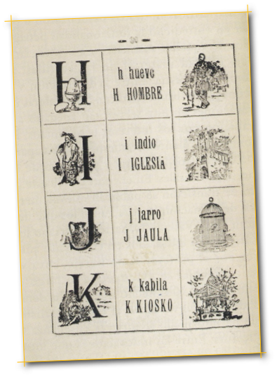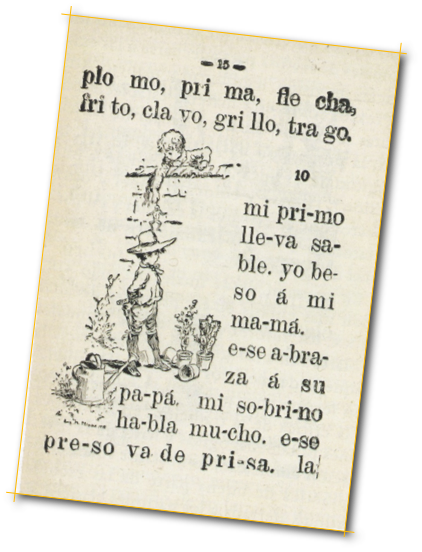 Páginas del conocido método de Jiménez Aroca, aprobado en 1883 y editado por Calleja a lo largo de varias décadas. Silabarios y Catones