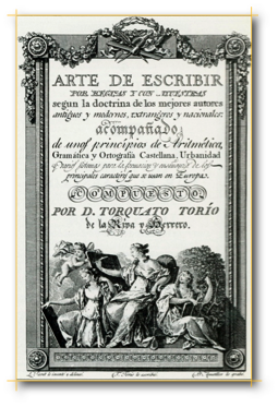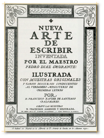 El arte de la escritura Portadillas de los libros de los calígrafos Torcuato Torío de la Riva y  Francisco de Santiago Palomares (1802 y 1776), dos clásicos del género.