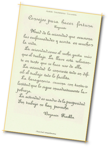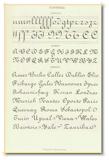 El arte de la escritura El Álbum Caligráfico Universal, editado en 1901 en Barcelona, ofrecía una amplia colección de muestras de escritura europea  y de otros continentes. Véanse algunas láminas de letra redondilla.