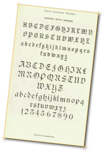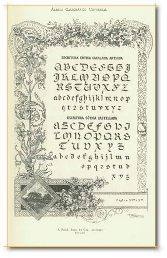 El arte de la escritura El Álbum Caligráfico Universal, editado en 1901 en Barcelona, ofrecía una amplia colección de muestras de escritura europea  y de otros continentes. Véanse algunas láminas de letra gótica.