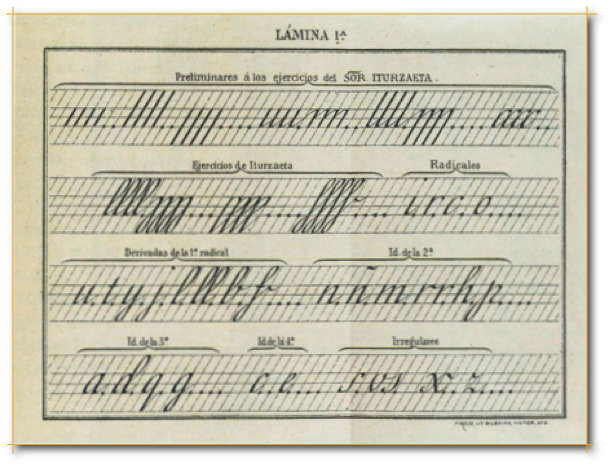 Iturzaeta Lámina  ejercicios de preescritura para la caligrafía Iturzaeta.