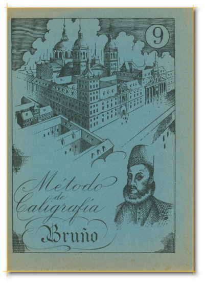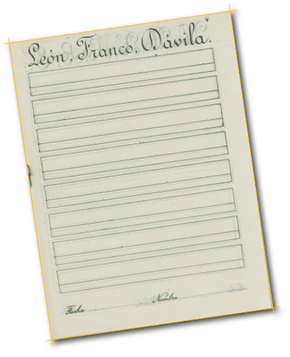 Cuadernos de escritura Muestras del método Bruño de caligrafía en los años cincuenta. La letra redonda, con ribetes de adorno, y unida.