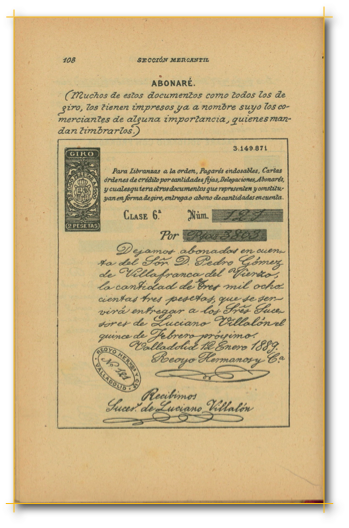 Manuscritos escolares Véase un modelo de póliza de seguros y de abonaré de la Miscelánea  de Documentos de Paluzíe (1916).  Ambos con distintos tipos de letra.