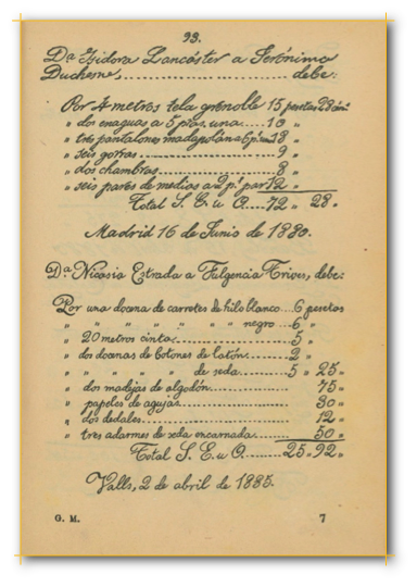 Manuscritos escolares Documentos contables de la Guía de la Mujer de Faustino Paluzíe (1926).