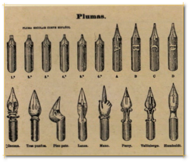 escribir Plumas de distintos cortes para uso escolar.