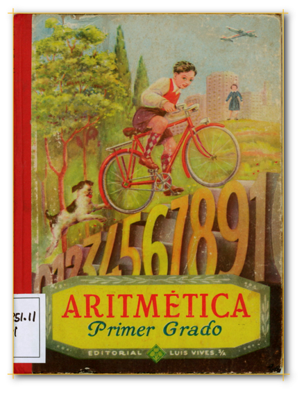 La imagen de esta cubierta quiere ejemplificar el esforzado ascenso de un alumno por el mundo de los números. Cartillas y Libros  de Aritmética