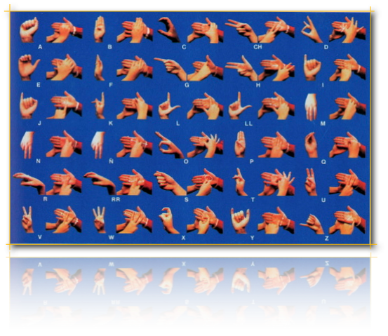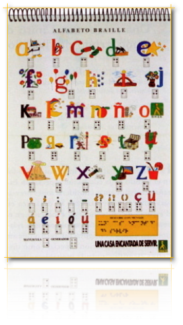 Modelo de alfabeto Braille para ciegos. Alfabeto manual dactilográfico para la enseñanza de los sordos. Abecedarios  Iconográficos